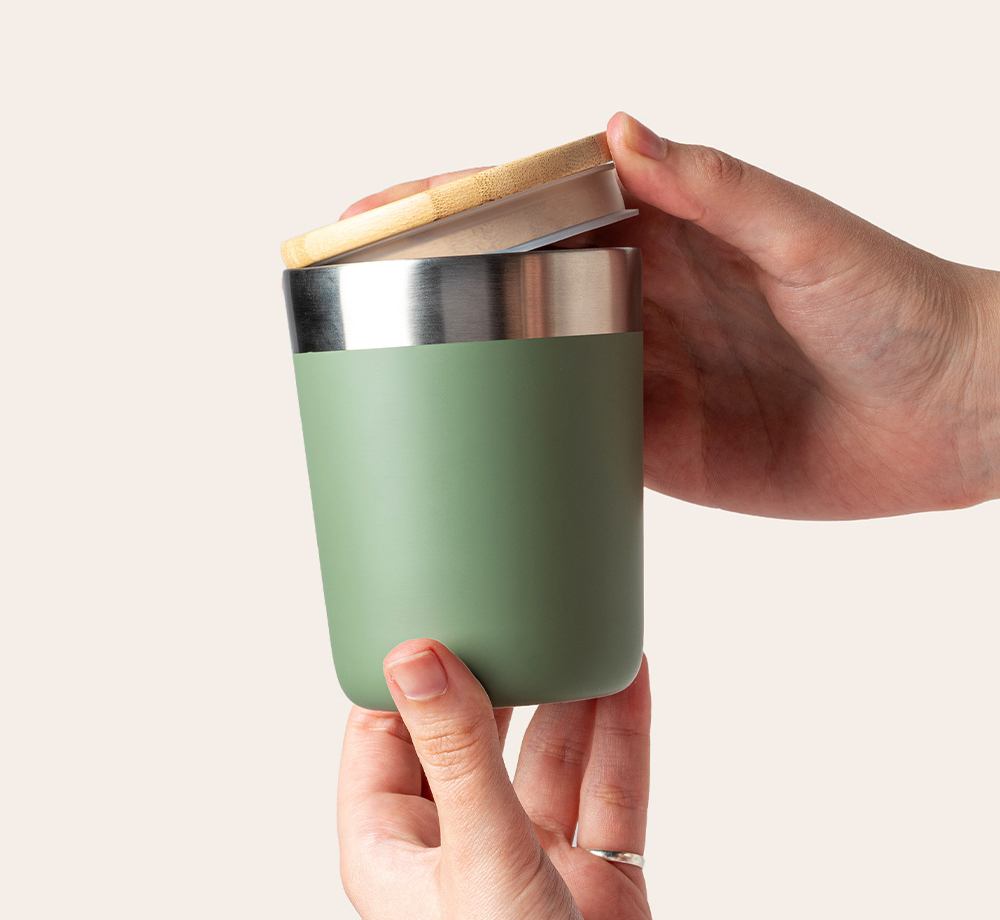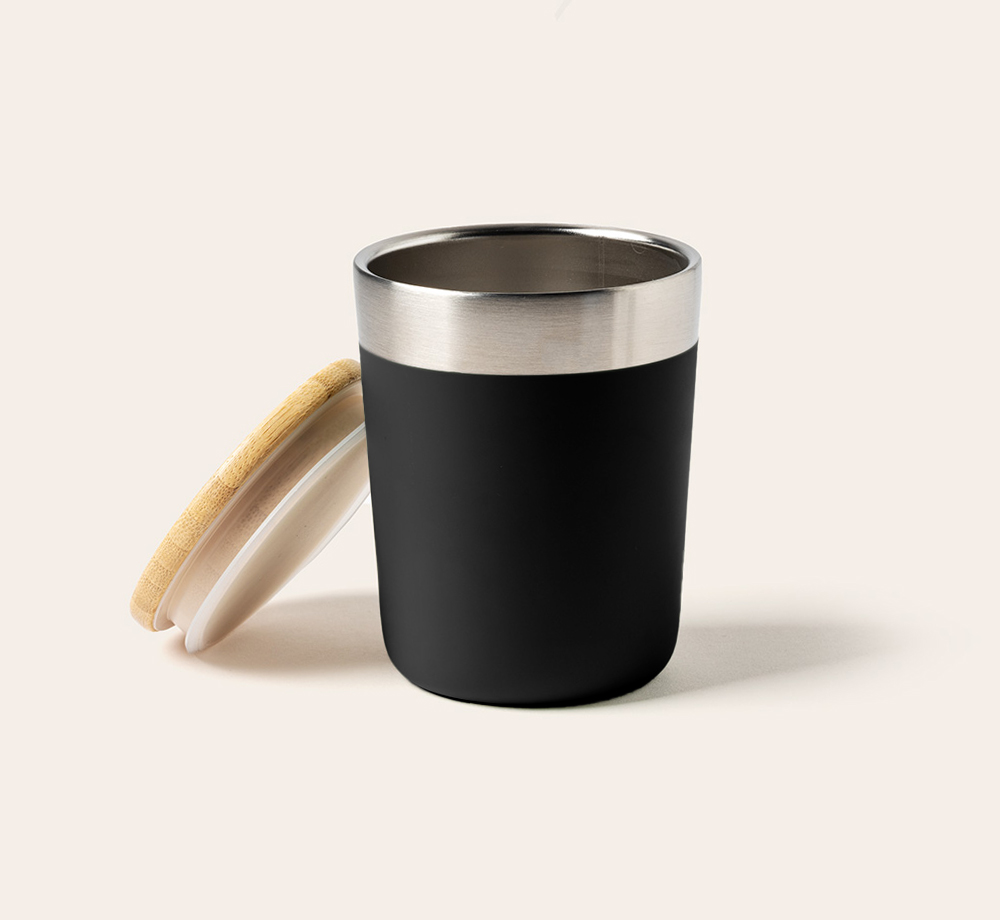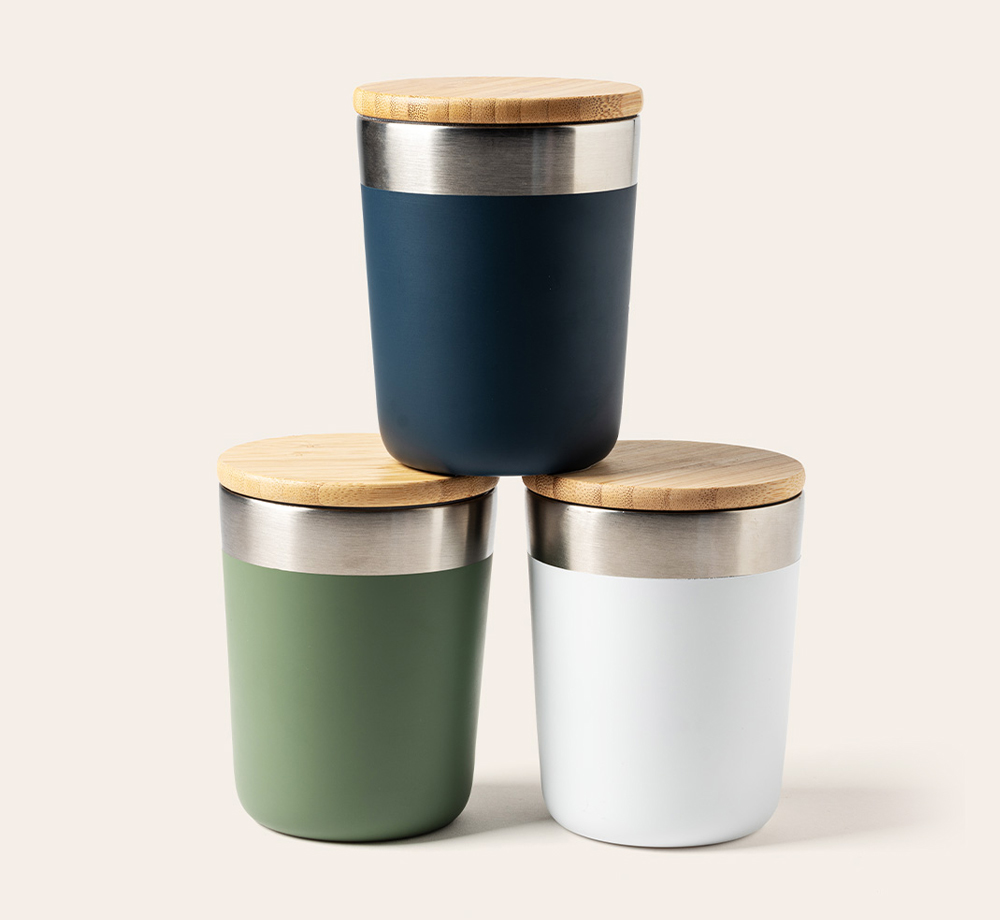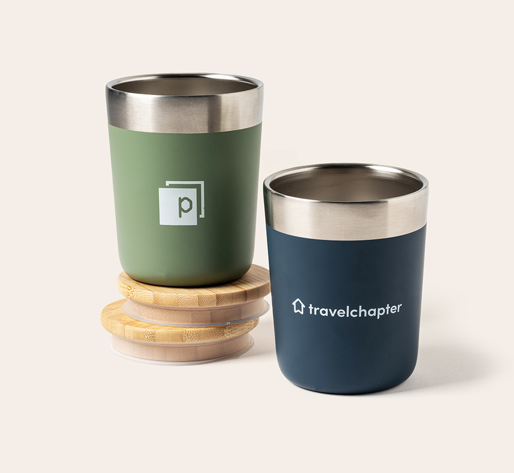 This double walled copper vacuum insulated tumbler is a great modern option for a corporate gift. The lid is made from organic bamboo, and the stainless steel keeps drinks hot or cold for several hours. Choose from a range of colours and decoration methods to create your perfect branded tumbler. This tumbler is also BPA free.