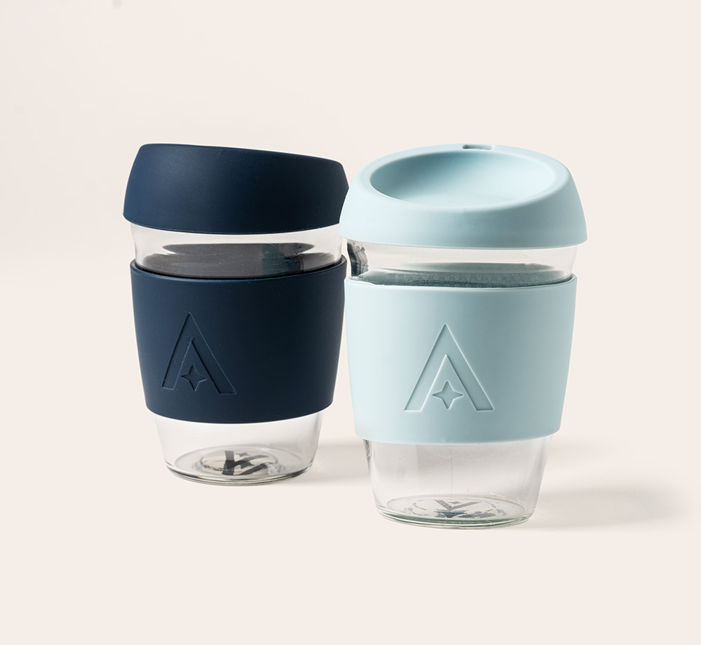 A high quality tumbler for coffee and other drinks can be a really valuable gift that gets plenty of use. This 12oz/354ml borosilicate glass Uberstar travel cup weighs only 230g, yet it's very strong, perfect for carrying hot and cold liquids around. The silicone sleeve is available in different colours, and this cup is microwave and dishwasher safe.