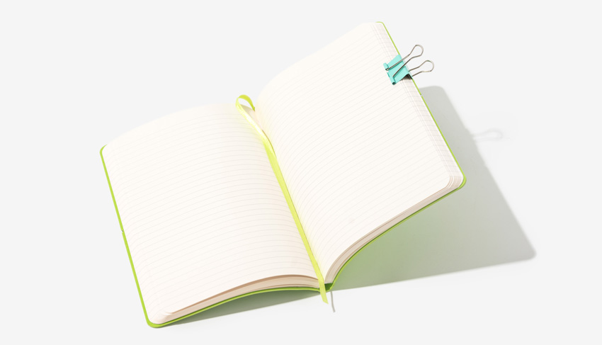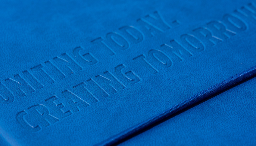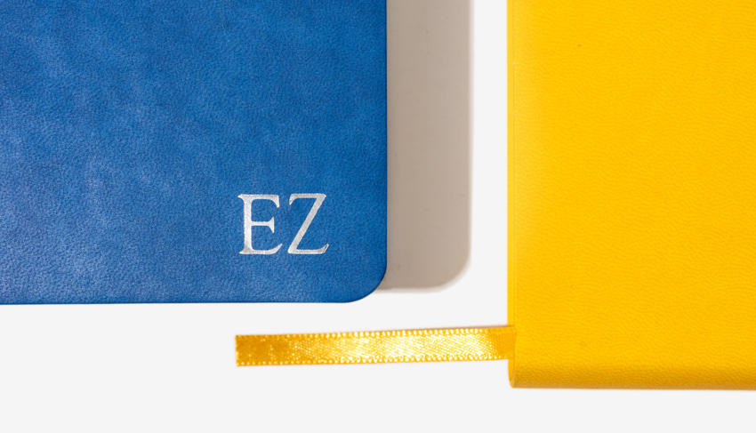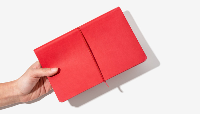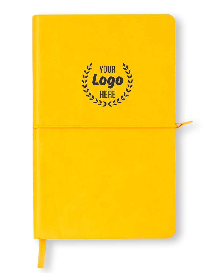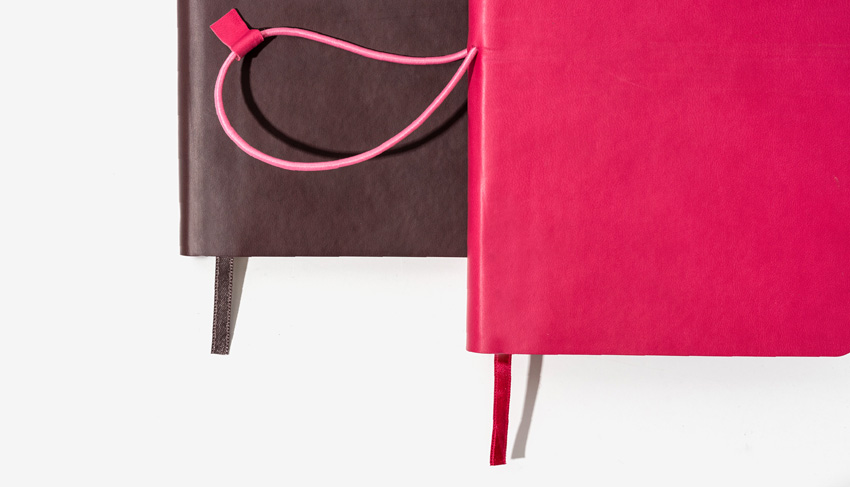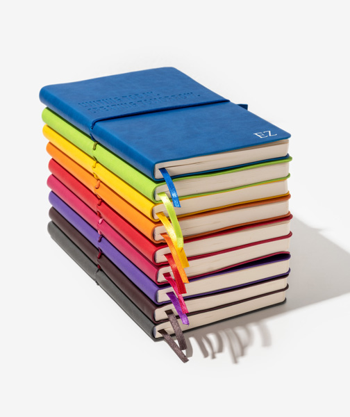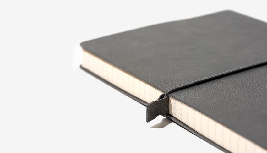 The cover has a small lip, encasing carefully a block of 240p of 80gsm FSC paper, available in 4 different templates : plain, ruled, dotted or squared pages. Available from 100 units in various colours, it can be customised using the branding method of your choice.