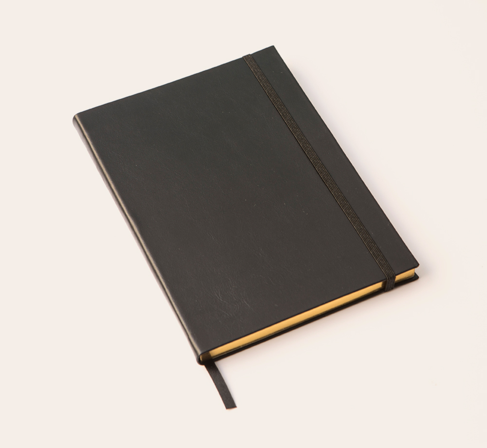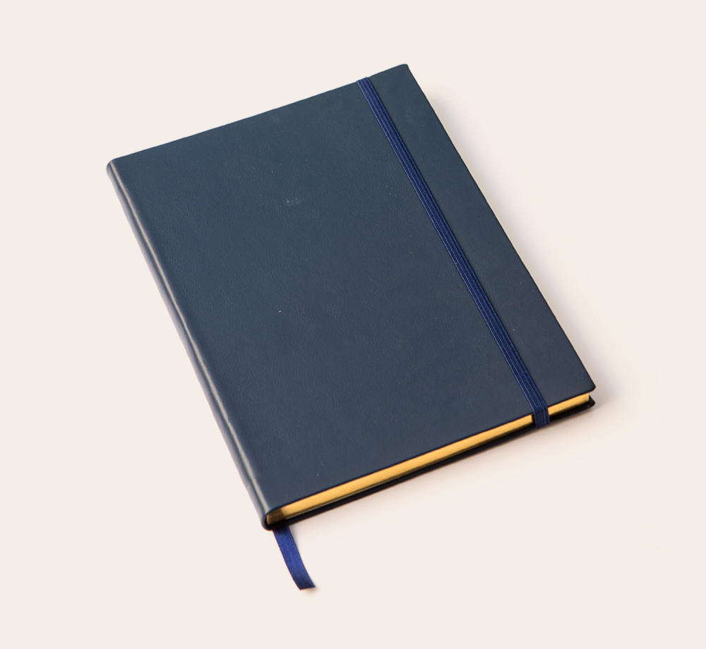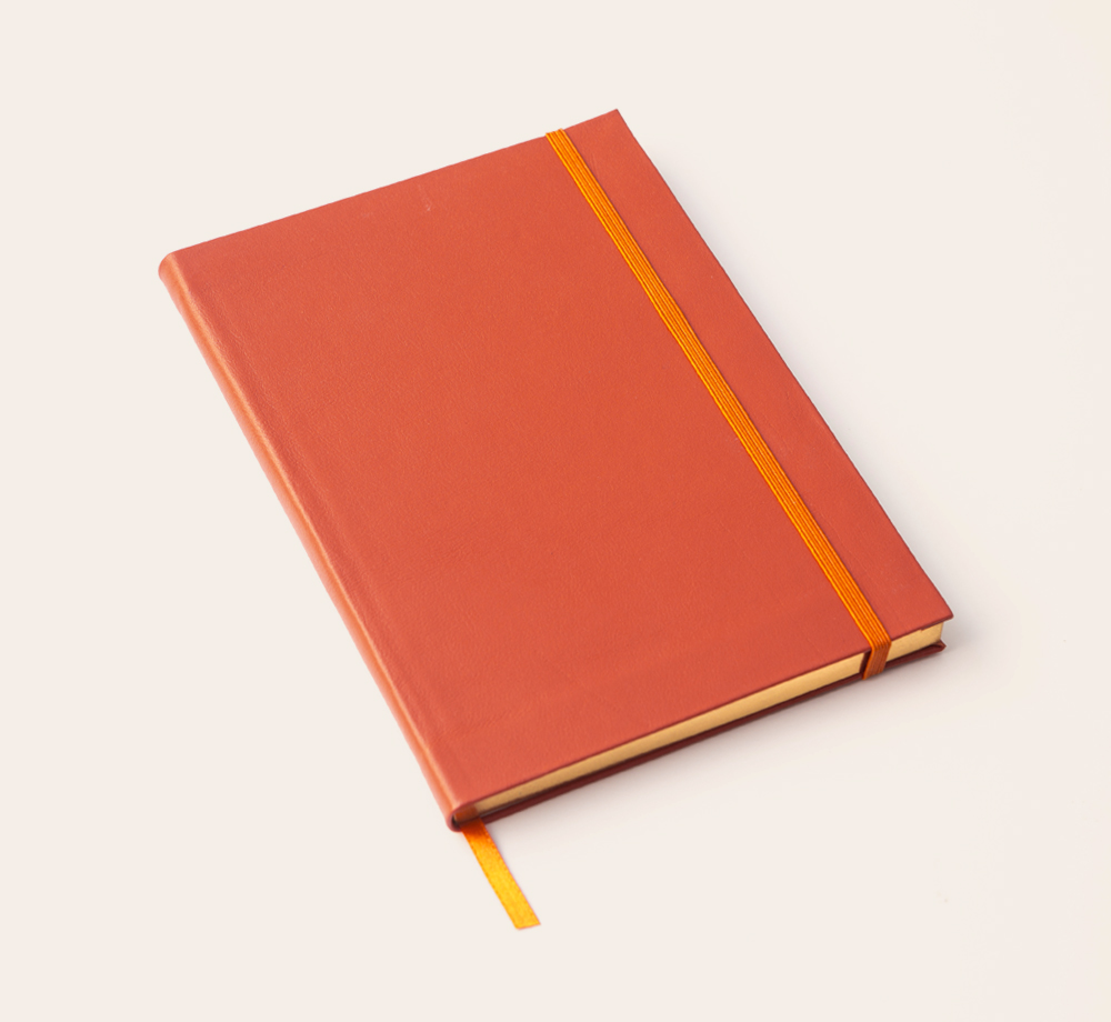 Handmade by our bindery these leather journals are designed to be luxurious. The Italian leather cover is a semi-flexible journal striking the perfect balance to protect your notes whilst having a rich feel bringing out the natural texture and feel of the top grain leather. There are over eighty different colour options to ensure your brands or clients colours are matched perfectly. Each leather journal comes with 192 pages in either ruled or plain Ivory  90gsm ivory paper and gold gilt edges.