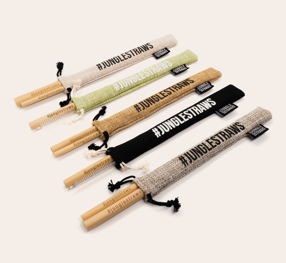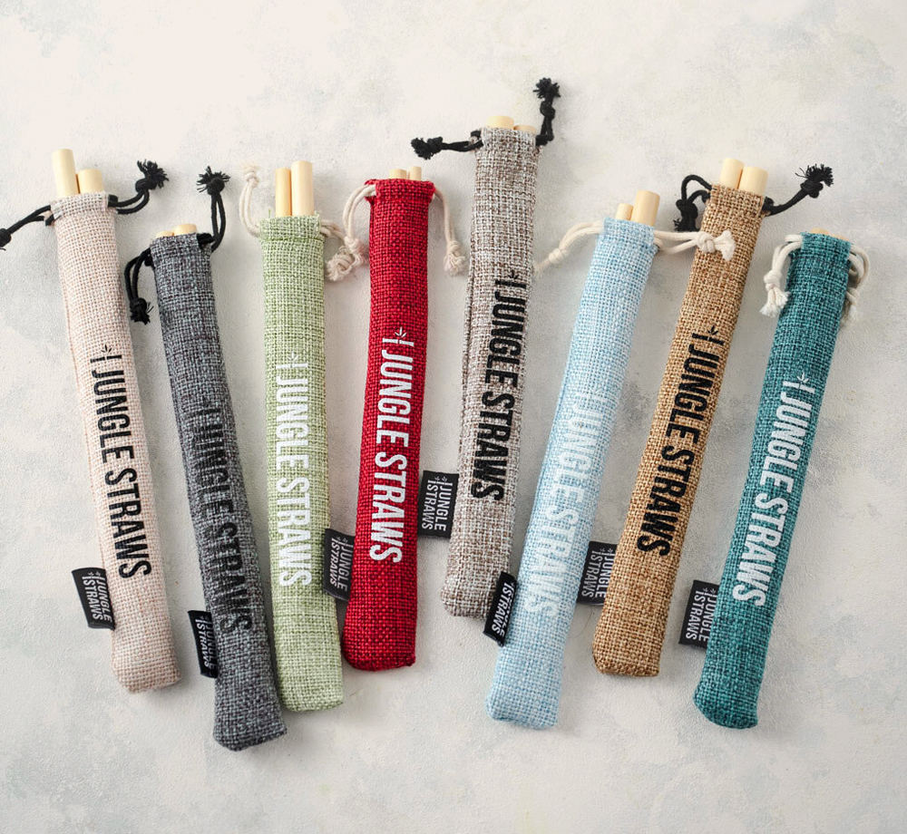 Jungle Culture Reusable Bamboo Straws with Jute Pouch