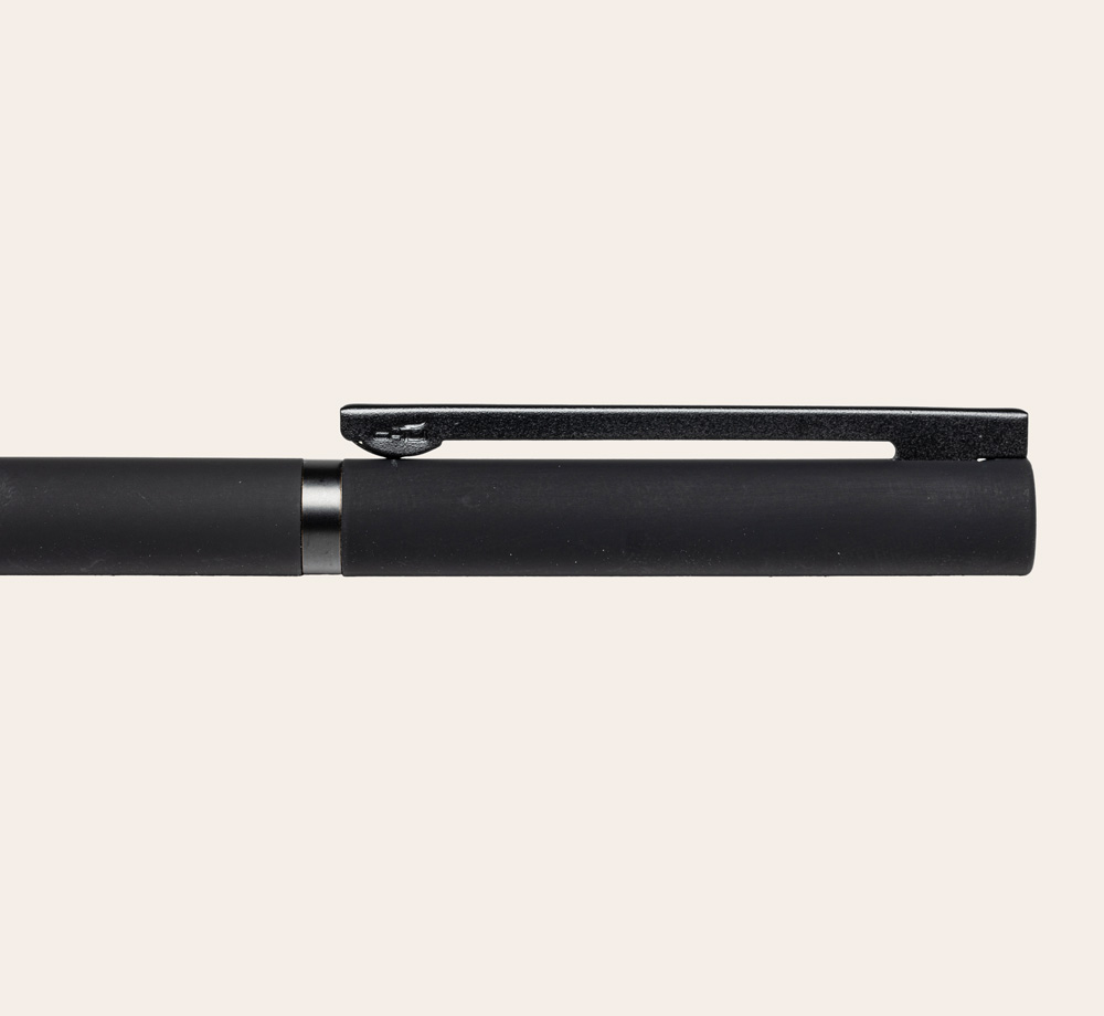 The Sari twist pen Large is a slightly bulkier version of the Sari pen, offering a better grip. It is a classic sleek design with a very professional modern look. The body is metal with a black rubberised abs finish. It has a 1mm German black ink tip and refill. The body of the pen can be customised with your logo laser engraved or UV printed.