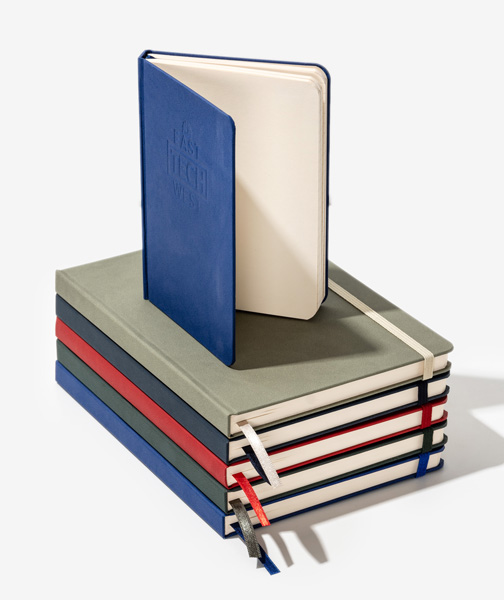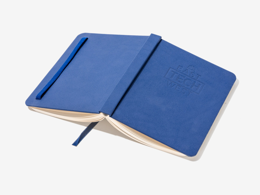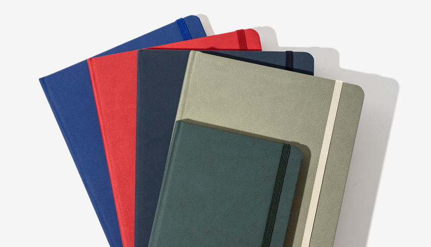 Our Bookblock Silk Touch notebook is an elegant hard cover notebook with a very smooth velvet feel. Made with PU coated paper offering a smooth “nubuck touch” feel, it gives very good results with a hot foiled logo, or can showcase a smart and discreet debossed artwork. It is available in 5 colours in A5 and A6 sizes.