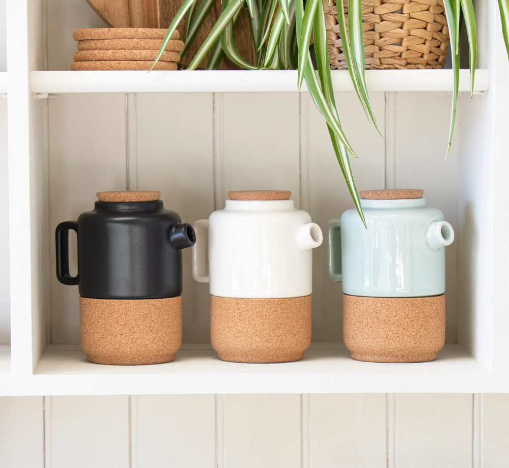 Liga's eco teapot is a great addition to a sustainable gift set. Made from organic cork and earthenware ceramic, your tea stays naturally insulated. The cork is harvested naturally from Portuguese cork forests without harming the trees, and continues to absorb CO2 even as this product. The ceramic element can be separated from the cork base and is dishwasher safe.