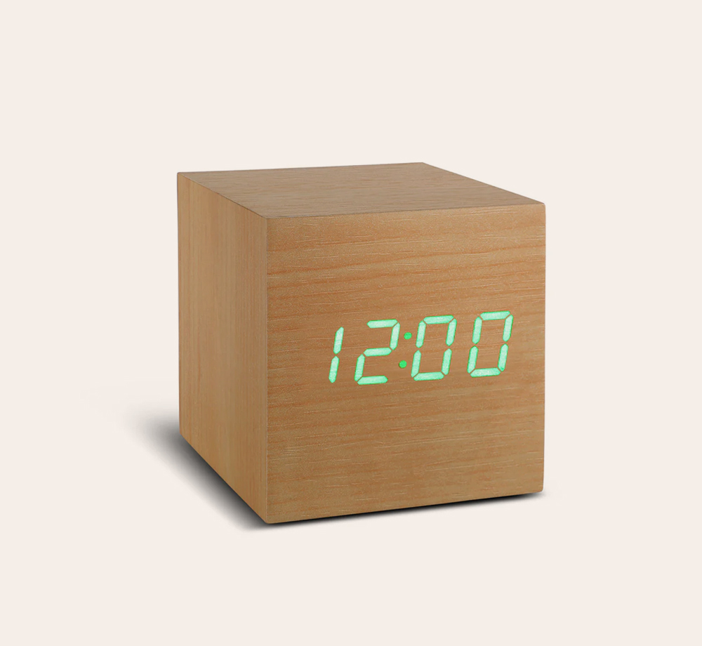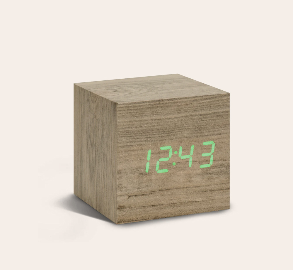 Gingko Wooden Cube Click Clock